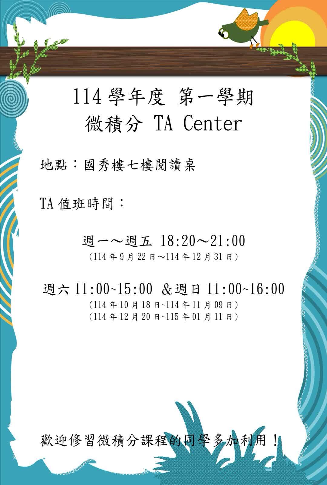 【課務組】114學年度第1學期微積分TA Center,請多加利用!